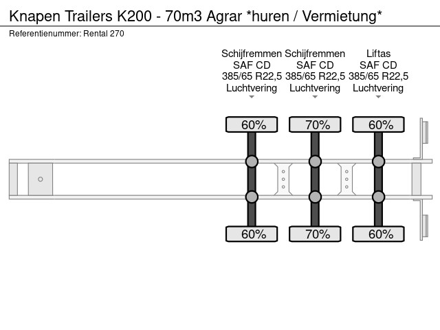 Wir arbeiten mit renommierten Marken der Branche und stellen unsere Flotte nach Qualität, Zuverlässigkeit und Benutzerfreundlichkeit zusammen. Dazu gehören Tisvol, De Wagtere und Knapen Trailers. Kontaktieren Sie uns für das aktuelle Angebot pro Marke.
